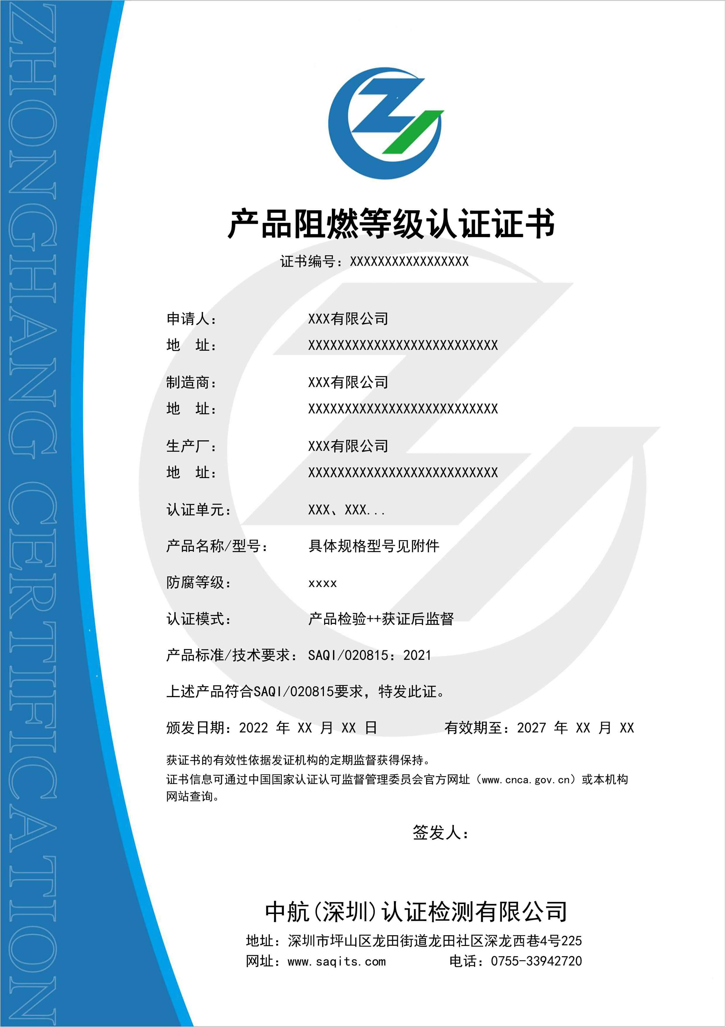 產品阻燃等級認證證書,按-建筑材料及產品燃燒性能分類分為:A1級、A2級、B級、C級、D級、E級、F級。 A級防火等級:A屬于不燃材料,達到A級阻燃等級很高,而且價格也很貴。 B級防火等級:B阻燃等級為難燃材料,一般高端公共場所,都是用這種材料裝飾的...查看更多>>