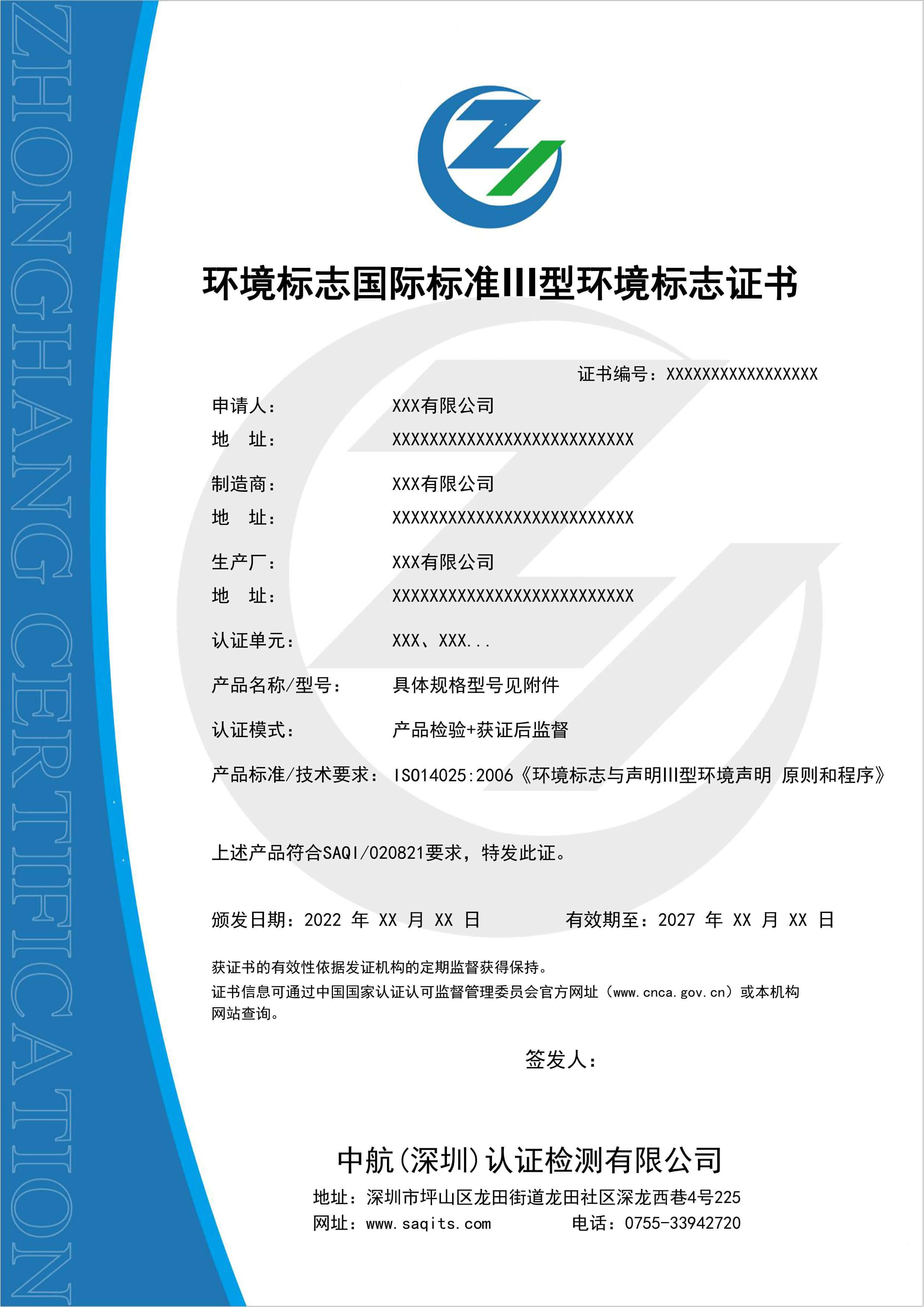 環境標志國際標準III型環境標志證書:1、增強企業競爭力,中國環境標志是綠色產品的權威認證,可提高產品和品牌的市場競爭力 2、增強賣點,中國環境標志可作為產品在市場銷售過程中有力賣點,增強消費者信賴感,提高產品銷售力,更可增加產品的利潤...查看更多>>
