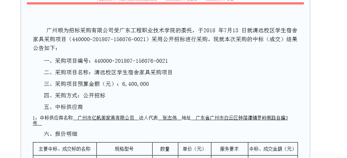 在廣東清遠校區學生宿舍家具采購項目(440000-201807-156076-0021)中,我們恭喜廣州市億帆美家具有限公司成功奪標。我們在查看該標書的過程中,我們看到整個標書除了需要《五星品牌認證證書》外,首次出現了《Q/HXC001-2018家具定制服務評價體系認證證書》,招標方對家具的定制服務提出了更高的要求。